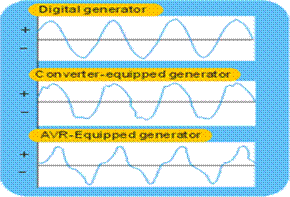 AVR满载输出波形 AVR空载输出波形 而数码变频发电机的出现克服了传统发电机的缺点,它主要由发动机、永磁电机和变频器构成,具有以下优异的性能特征: